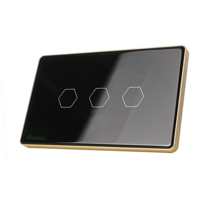 Công tắc cảm ứng Wifi Hunonic 3 Nút, HCN, màu Đen