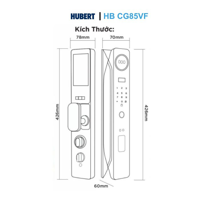| Phương thức mở khóa | Vân tay, mã số, thẻ từ, chìa cơ, app wifi, Face ID, camera, chuông cửa |