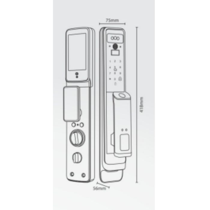 | Kích thước thân khóa ngoài | R 75 x C 418 x D 56 mm |