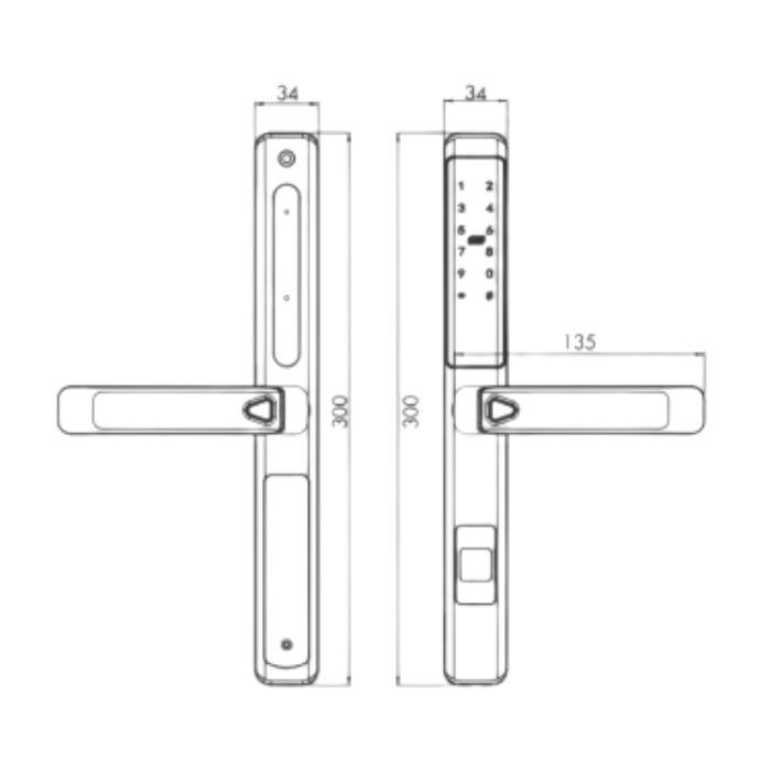 Kích thước thân khóa ngoài: R 34 x C 300 x D 25mm