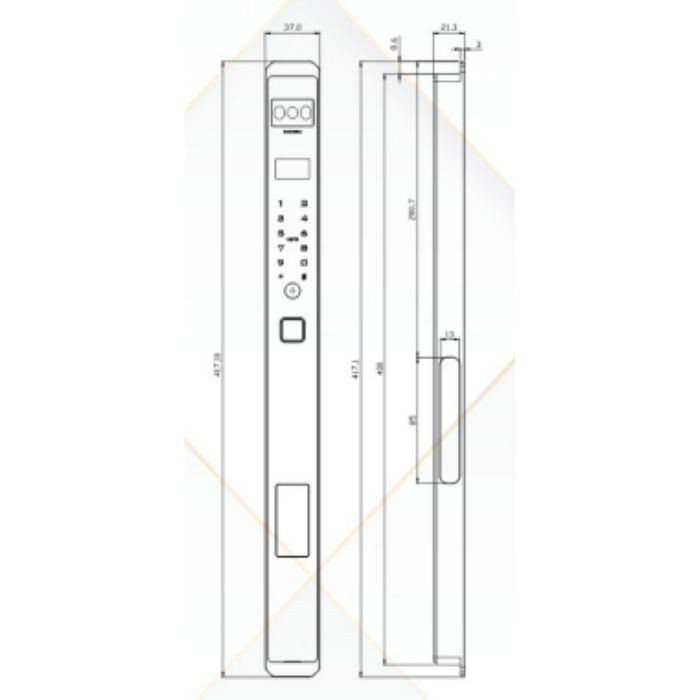 | Kích thước thân khóa ngoài | R37 xC 417 xD 21.3mm |