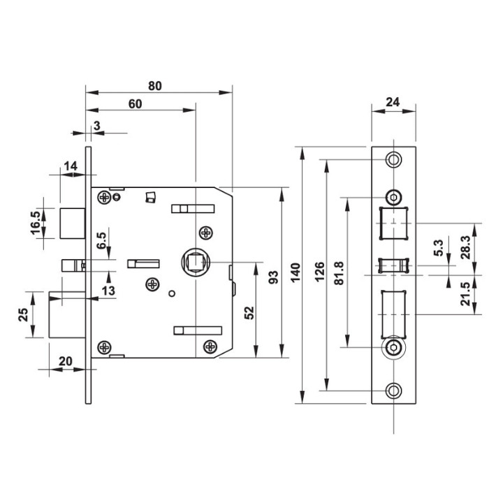 | Kích thước mặt ngoài | 283x64x26.8mm đã bao gồm tay nắm |