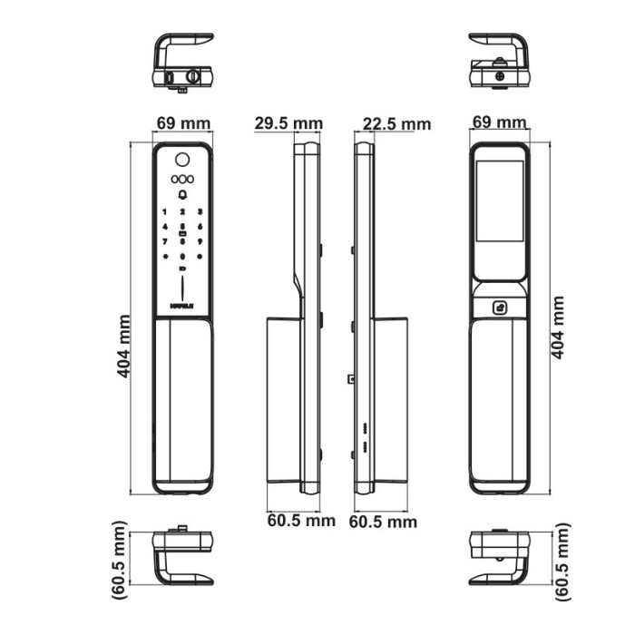 | Tính năng | - Nguồn điện: Pin Li-Ion 5000mAh - Nguồn khẩn cấp: Cổng USB-C - Nhiệt độ vận hành: Từ -20°C đến +75°C - Mở khóa siêu nhanh chỉ trong 0.4s bằng công nghệ quét khuôn mặt ngay cả trong điều kiện thiếu sáng - Camera 1MP với góc nhìn rộnglên tới 120 độ kết hợp màn hình quan sát 4 inch ở mặt trong khóa, giúp giám sát các hoạt động bên ngoài cửa dễ dàng hơn - Pin Li-ion lên tới 5000 mAh và sạc đầy lại nhanh chóng, đảm bảo khóa hoạt động ổn định - Dễ dàng kết nối và cài đặt khóa thông qua ứng dụng Häfele Smart Living qua sóng Wifi - Đèn viền Led màu trắng được tích hợp ở cạnh mặt ngoài khóa - Tích hợp module Wifi 2.4GHz và module RF433MHz - Hướng dẫn giọng nói bằng tiếng Anh (giọng nam hoặc nữ) - Chế độ riêng tư, chế độ khách, chế độ xác thực kép, chế độ tiết kiệm pin |