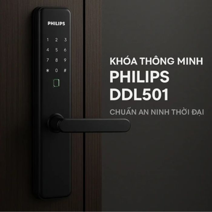 Philips DDL501 gây ấn tượng với cấu trúc thép không gỉ chắc chắn, phù hợp với nhiều loại cửa gỗ và cửa sắt. Khóa được tích hợp công nghệ vân tay FPC, mã số ảo chống nhìn trộm và tính năng tự động khóa khi cửa đóng. Cảnh báo đột nhập, cảnh báo pin yếu và khả năng hoạt động ổn định trong môi trường độ ẩm cao giúp sản phẩm duy trì độ bền vượt trội. Đây là mẫu khóa cân bằng giữa hiệu năng, độ an toàn và giá trị sử dụng, đáp ứng tốt nhu cầu an ninh của đa dạng khách hàng.