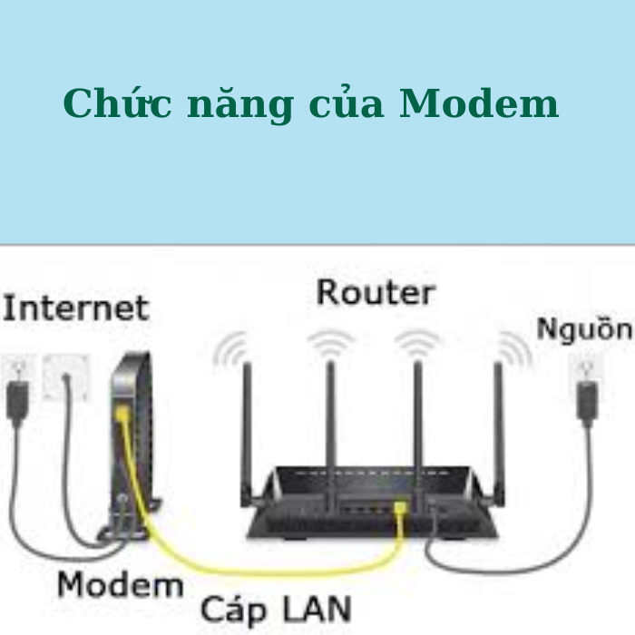 Hiểu đơn giản, modem là cửa ngõ đầu tiên giúp Internet đi vào ngôi nhà của bạn. Modem sẽ kết nối trực tiếp với đường truyền cáp quang hoặc cáp đồng. Sau khi nhận tín hiệu, modem giải mã và cung cấp Internet cho thiết bị tiếp theo (thường là Router wifi). Một số modem hiện nay được tích hợp thêm chức năng phát wifi, gọi là modem wifi, cho phép bạn dùng Internet trực tiếp mà không cần thêm router.